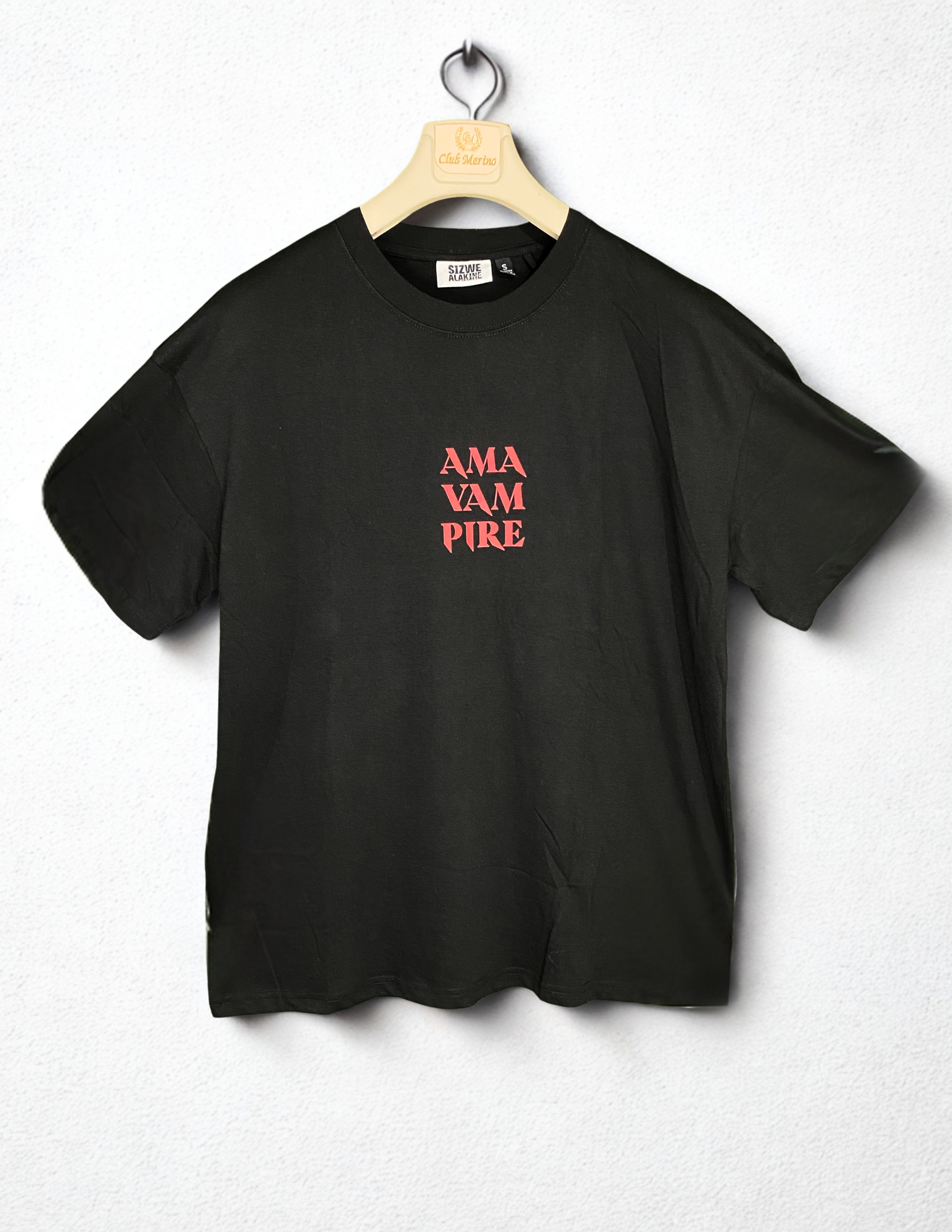 Stand out in bold streetwear with the LabelLuxe Oversized Black T-Shirt. This piece features a gothic-inspired vampire graphic, distressed textures, and striking red typography that reads “AMA VAM PIRE.” Crafted from premium 100% cotton, it delivers comfort with a relaxed oversized fit, making it the perfect everyday statement tee.